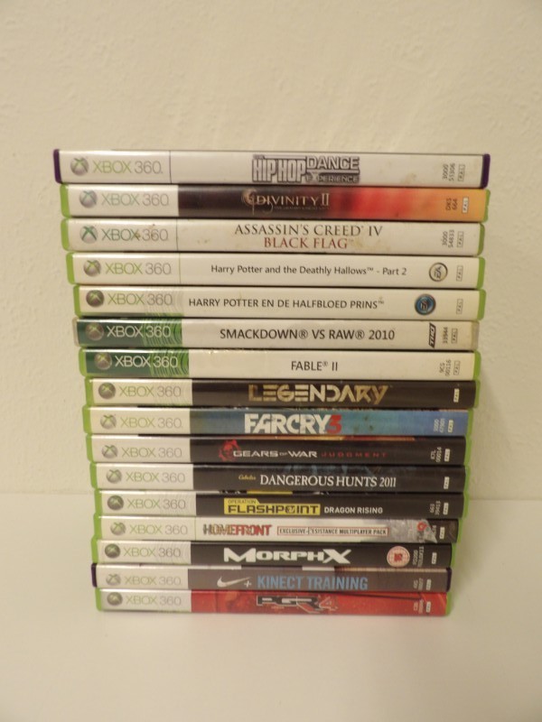 Verzameling van 16 verschillende spellen voor de Xbox 360 console.