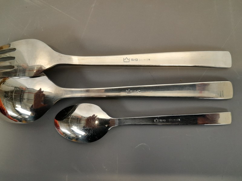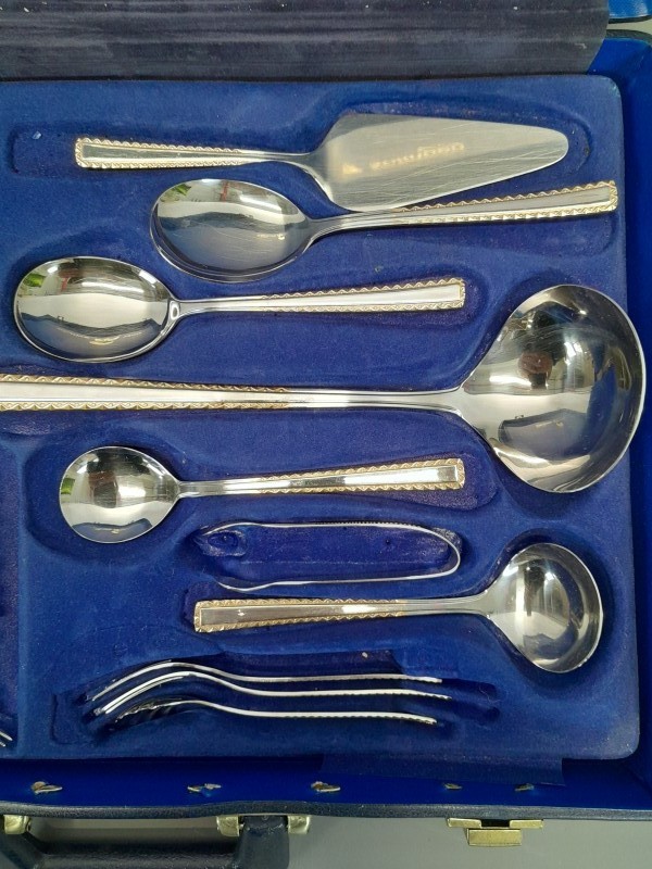 - De set is compleet en omvat 12 grote messen, 12 grote vorken, 12 grote lepels, 12 kleine vorken, 12 kleine lepels en 10 extra serveer-/speciale stukken.