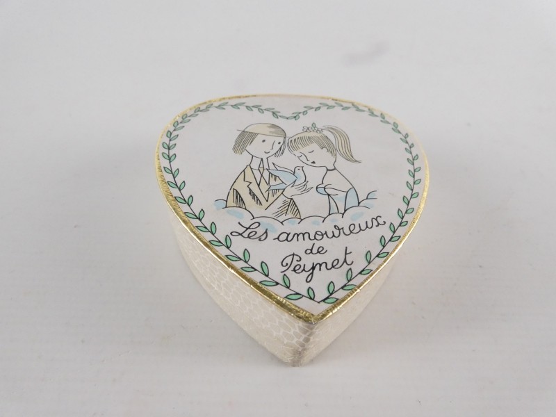 Inclusief een hartvormig doosje met de iconische “Les Amoureux de Peynet” (de geliefden van Peynet), ontworpen door de Franse illustrator Raymond Peynet.