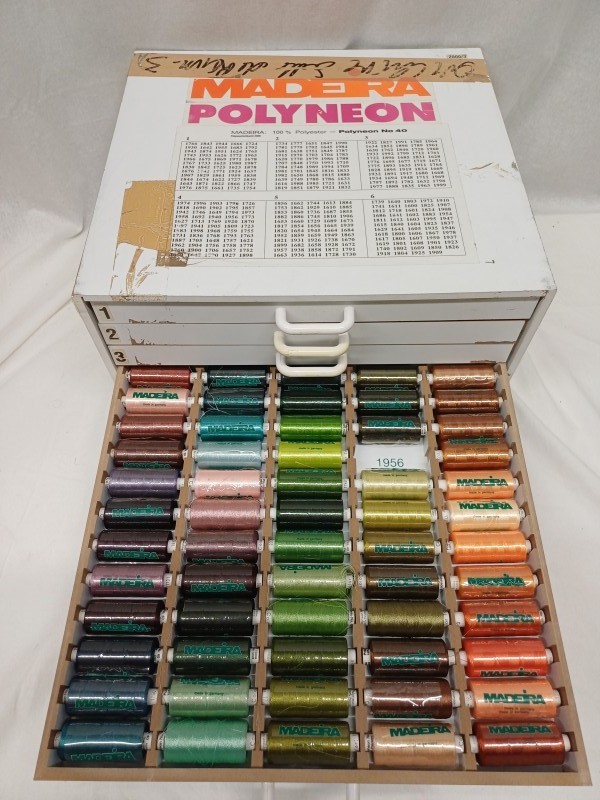 Originele Madeira Polyneon naaigaren box met ladenkast