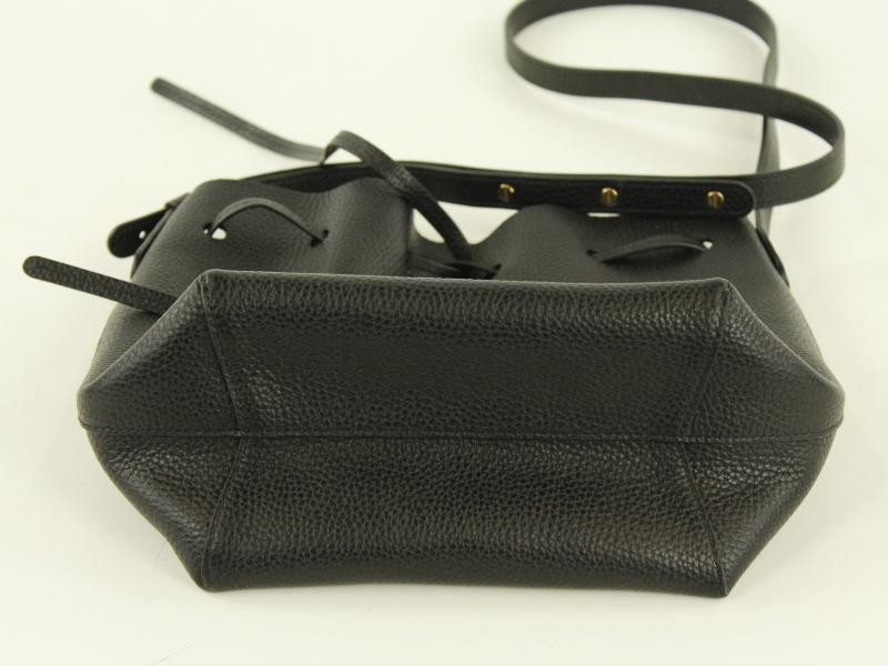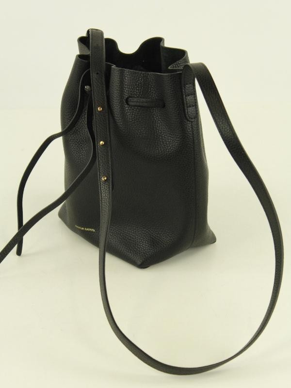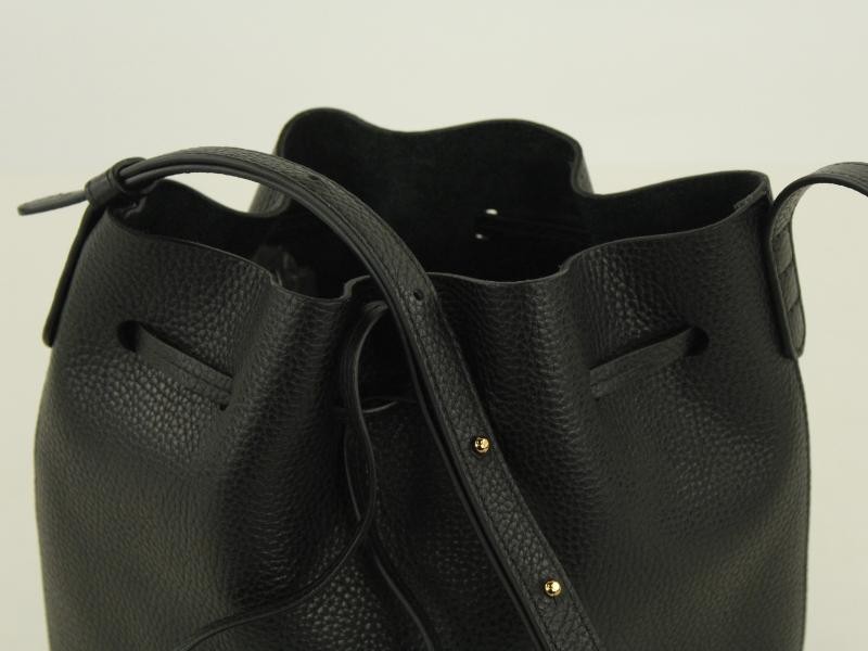 Stijlvolle zwarte bucket bag van het populaire merk Mansur Gavriel, uitgevoerd in soepel generfd leder met een luxueuze uitstraling.