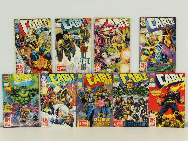 Dit lot bevat een verzameling van Nederlandstalige Cable comics, uitgegeven door Junior Press (JP Comics) op basis van de originele Marvel-verhalen. De reeks volgt de mutant Cable, een tijdreizende krijger uit de toekomst, bekend om zijn strijd tegen apocalyptische dreigingen en zijn nauwe band met de X-Men.