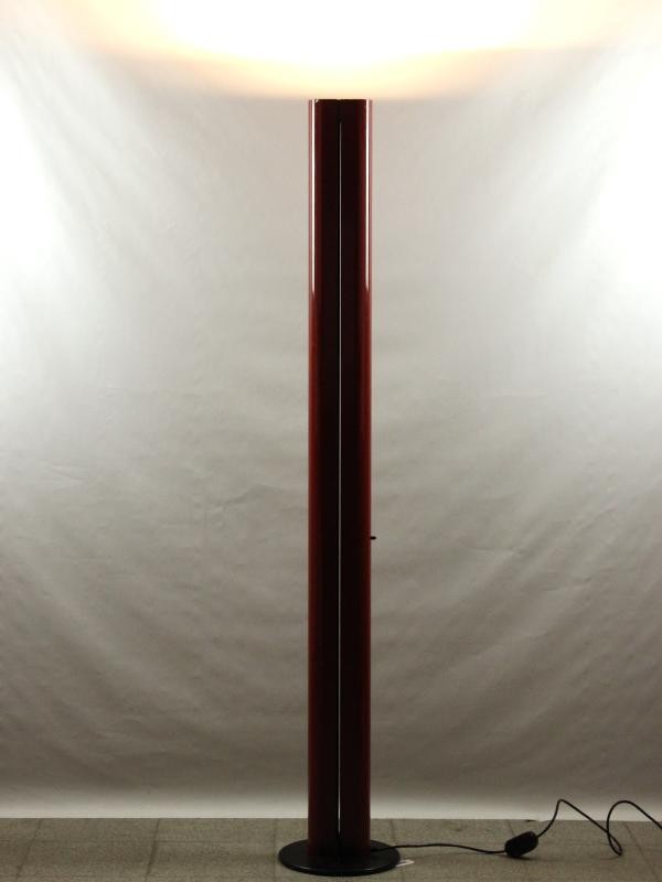 Rode uitvoering van de aluminium 'Megaron' staanlamp, begin jaren 90 ontworpen door Gianfranco Frattini voor het Italiaanse Artemide.
