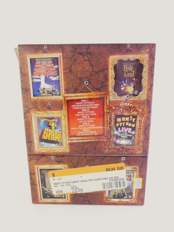 12-disc DVD set met de films ''And Now For Something Completely Different'' (1971), ''Monty Python And The Holy Grail'' (1974), ''Monty Python's Life of Brian'' (1979), ''Monty Python's Meaning Of Life'' (1983), alle 45 afleveringen van de "Monty Python's Flying Circus'' TV serie (1969 - 1974) en ''Monty Python Live At The Hollywood Bowl''.