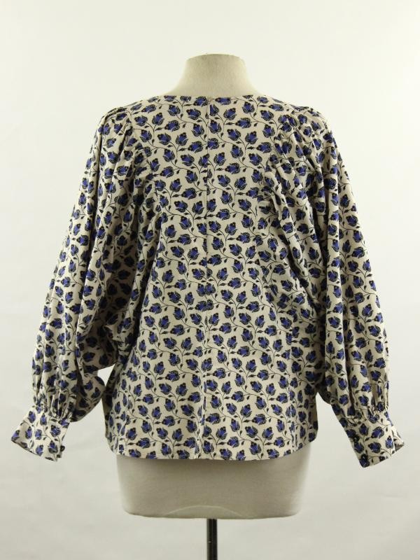 De blouse is afgewerkt met een ronde hals en sluit achteraan met een verborgen rits.