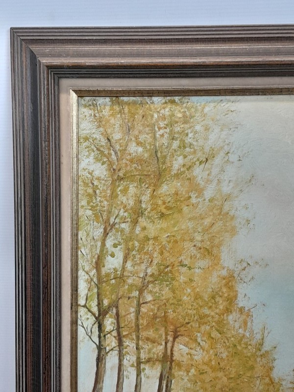 - Stijl: Realistisch – sfeervolle, klassieke landschapsschildering met warme herfsttinten.