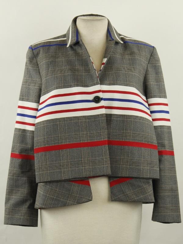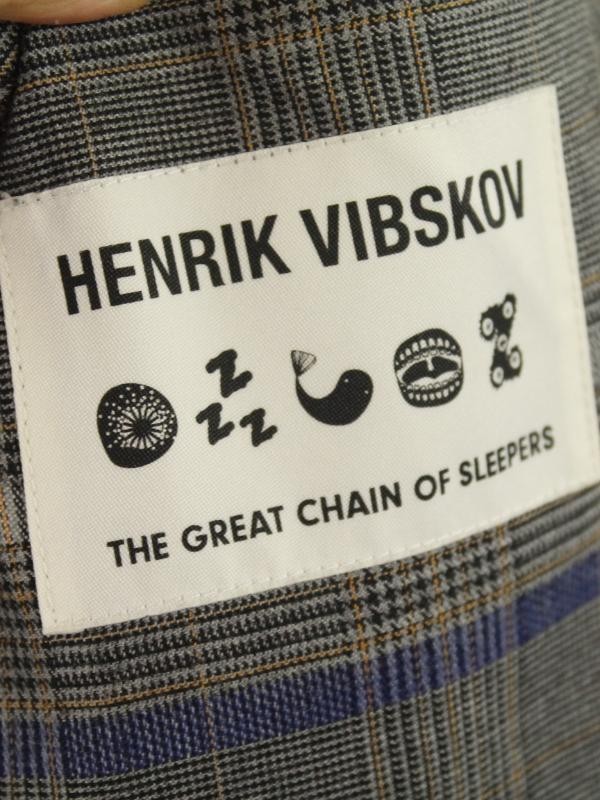 Opvallend vestje met kleurrijke accenten van Henrik Vibskov, uit de collectie 'The Great Chain of Sleepers'. Het vestje heeft een grijze ondertoon met subtiel oranje ruitjesmotief. Centraal loopt er een brede witte band met rode en blauwe lijnen. Ook op ander plekken zijn rode, blauwe en witte lijnen op te merken, wat het vestje een speelse toets geeft. De voorkant van het vest kan worden gesloten met één knoop. Aan de voorkant zijn de voorpanden wat korter dan de rest van het vest, wat een speciaal effect geeft. Aan de zijkanten bevinden zich tenslotte nog steekzakken. Vervaardigd in Portugal.