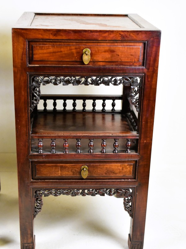 Paar Chinese nachtkastjes in massief hout – met snijwerk en lades