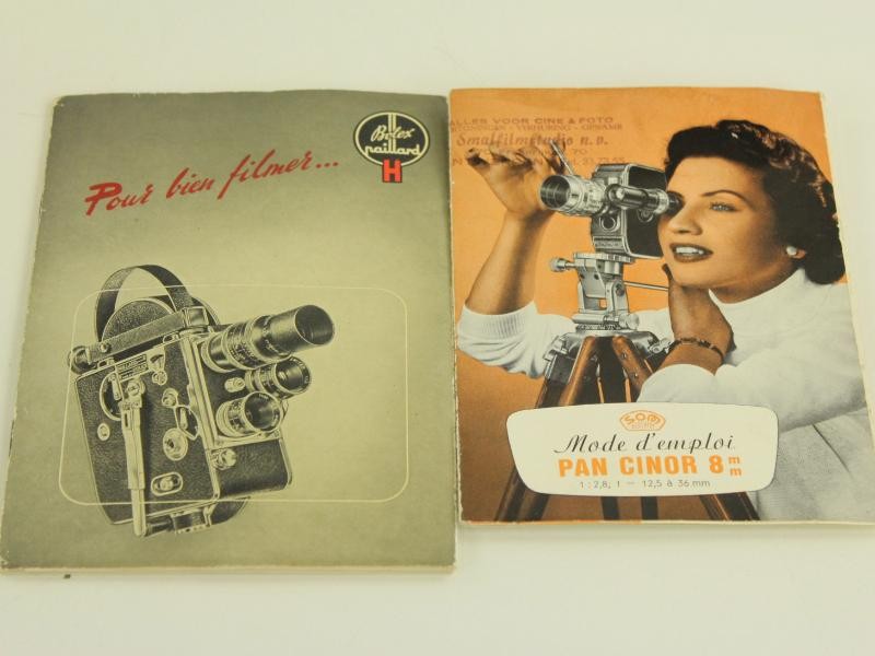De camera is uitgerust met handmatige bedieningselementen voor scherpstelling, diafragma en filmtransport. De aanwezige lenzen bieden verschillende brandpuntsafstanden, wat flexibiliteit geeft bij het filmen. De originele handleidingen en documentatie zijn inbegrepen, wat dit geheel ook interessant maakt voor verzamelaars.