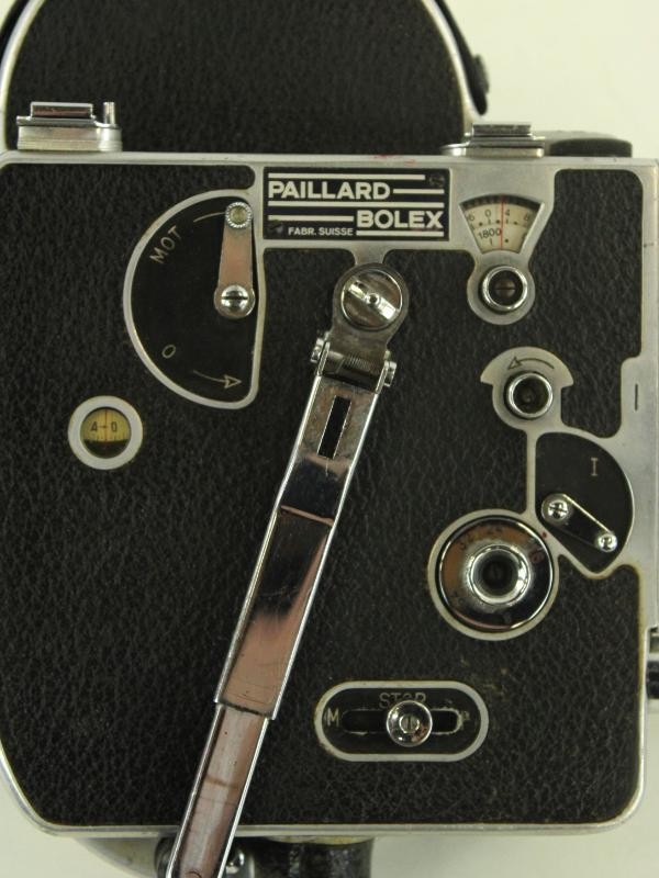 Vintage Paillard Bolex 8mm filmcamera, vervaardigd in Zwitserland, aangeboden als uitgebreide set met diverse accessoires en originele koffer. Dit type camera staat bekend om zijn mechanische precisie en robuuste bouwkwaliteit, en werd gebruikt voor amateur- en semi-professionele filmopnames op 8mm film.