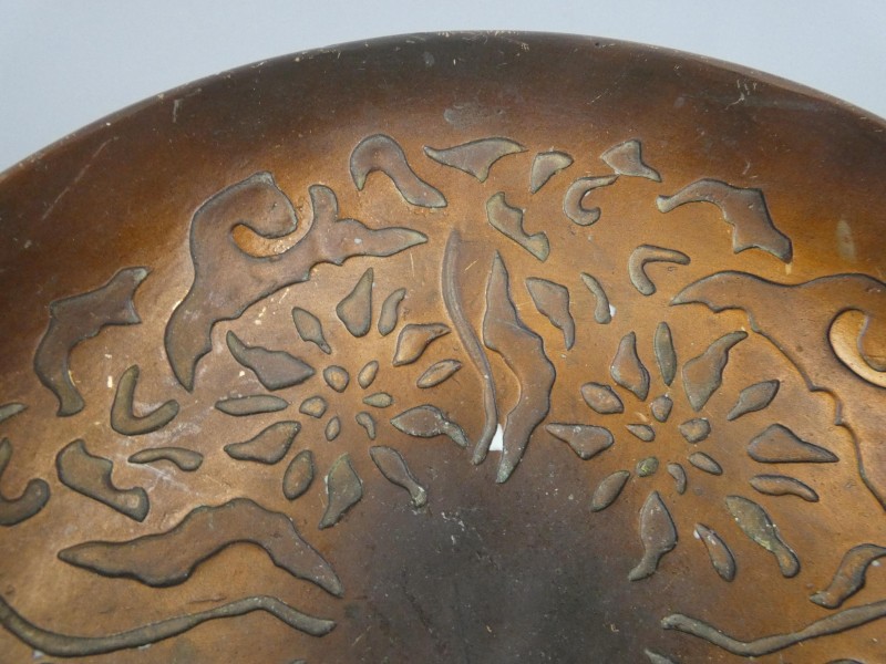 Uniek Design: De binnenzijde van de schaal is voorzien van een prachtig reliëf met bloemmotieven, terwijl de buitenzijde is afgewerkt met een schitterend goudkleurig glasmozaïek (crackle-effect).