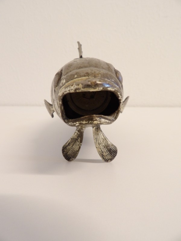 Wanneer je aan de staartvin draait, komt er peper uit de bek van de vis.