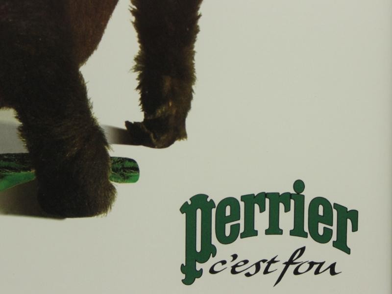 Dit is een typische knipoog uit de creatieve en humoristische reclamecampagnes waar Perrier in de jaren 80 en 90 om bekend stond.