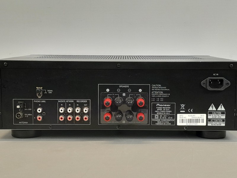 - De SX-20-K is een robuuste stereoversterker met 2 x 100 watt uitgangsvermogen, genoeg kracht om vrijwel elke luidspreker aan te sturen. De ingebouwde FM/AM-tuner maakt het mogelijk om je favoriete radiozenders direct te beluisteren. Dankzij meerdere analoge ingangen sluit je moeiteloos andere bronnen aan, zoals platenspeler, cd-speler of streamer.