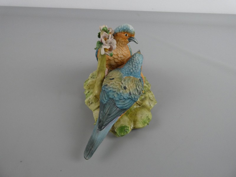 Design: Dit gedetailleerde kunstwerk toont een paar prachtig gekleurde vogels, zittend op een tak met delicate bloesems en groen. De levendige kleuren en realistische textuur van de veren maken het een echte blikvanger.