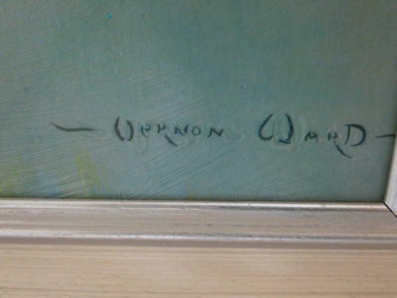 Het schilderij getiteld "Harmony of Spring" van de Britse kunstenaar Vernon Ward. Onderaan gehandtekend.