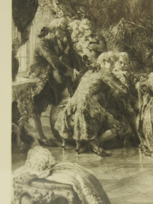 Als reproductie heeft deze prent vooral decoratieve en documentair-historische waarde: ze illustreert hoe 19e-eeuwse uitgevers kunst verspreidden via houtgravure en latere druktechnieken. Verzamelmatig is ze interessant voor liefhebbers van kostuum- en salonhistorie, rococo-revival en druk-/reproductiegeschiedenis. De potloodsignatuur verhoogt de presentatiewaarde.