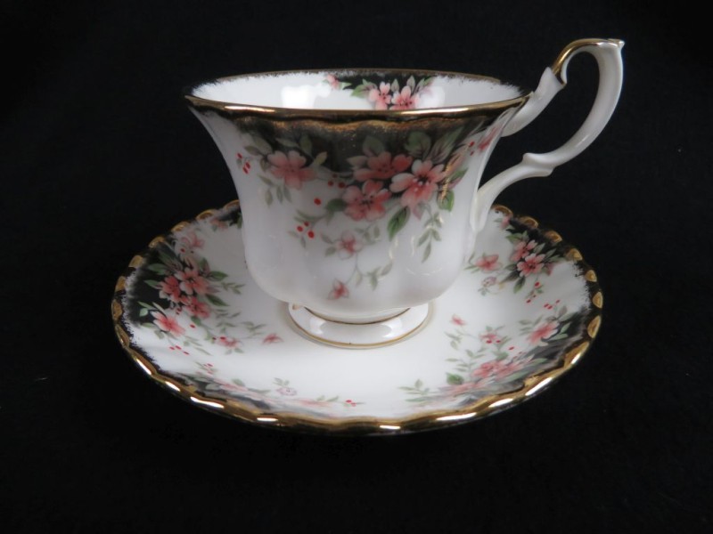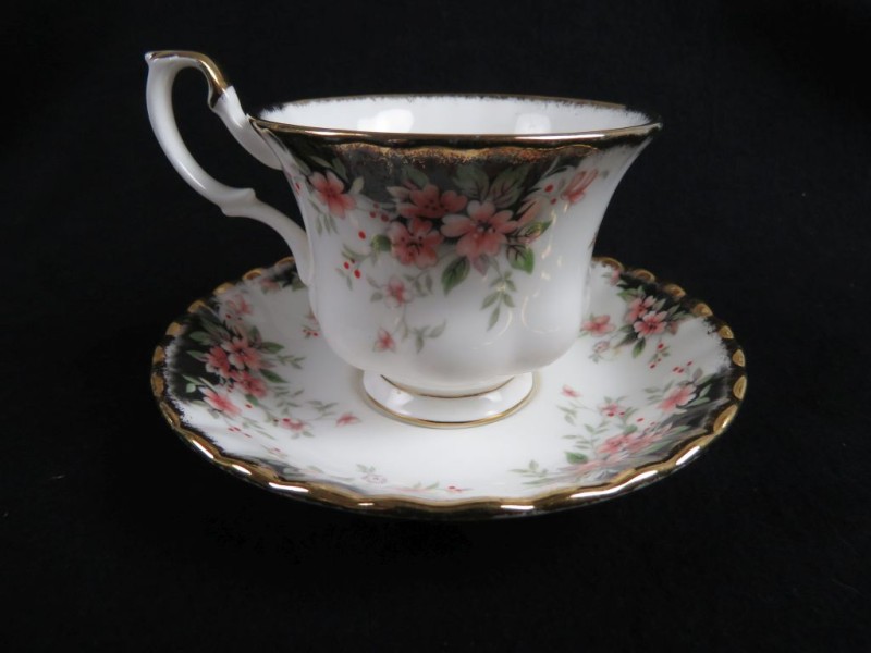 Dit is een elegante theekop en schotel set vervaardigd door Royal Albert in Bone China uit Engeland.