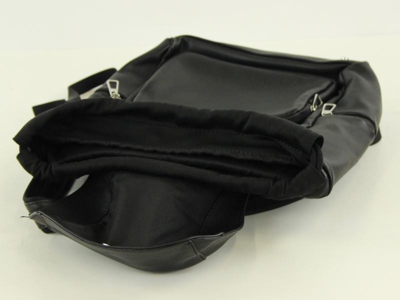 De rugtas beschikt over twee zijvakken met rits en een apart voorvak met rits.