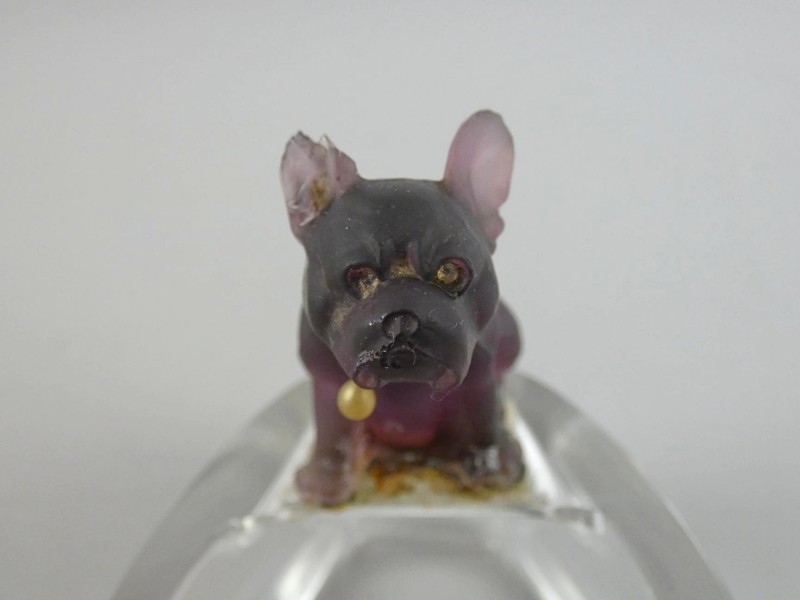 - Figuur van paars/aubergine gekleurd mat glas (hondje).
