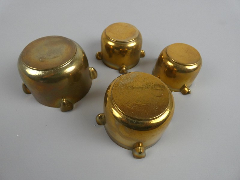 Ontdek deze elegante set van vier massieve messing asbakken in verschillende maten.