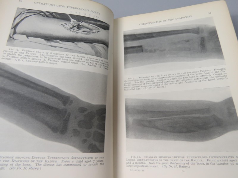 Deel II - 720 pagina's: Operaties voor tuberculose van botten en gewrichten, Operaties aan lippen, gezicht, kaken, tong, amandelen, keelholte, slokdarm, maag en darmen.