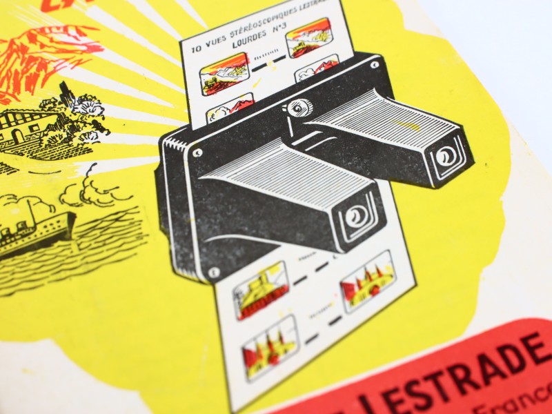 De Lestrade is een compacte stereoscopische kijker met twee lenzen, die elk oog een afzonderlijk beeld laat zien, waardoor een 3D-effect ontstaat. Het toestel werd veel gebruikt voor toeristische en educatieve doeleinden in de 20e eeuw. Met deze dia’s konden gebruikers historische steden en beroemde locaties levensecht ervaren. Het is een variatie op de View Master met ronde schijfjes.