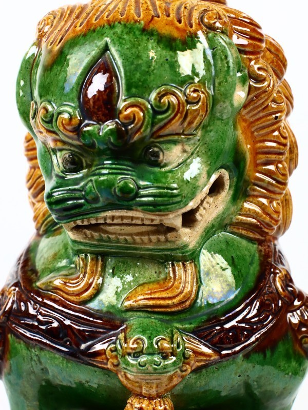 Fu‑leeuwen worden traditioneel geplaatst bij ingangen van huizen, tempels en paleizen als beschermers tegen kwaad en ongeluk. De combinatie van mannelijke en vrouwelijke attributen (bal, welp of object) staat symbool voor de balans van kracht, bescherming, zorg en harmonie. Hun expressieve gezichten en krachtige houding communiceren waakzaamheid en kracht, terwijl de kleurrijke glazuurlaag de esthetische waarde verhoogt.
