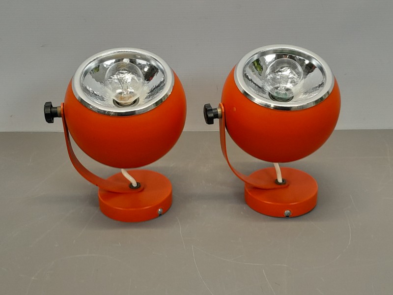 Set van 2 Vintage Space Age wandlampen – Eyeball design in oranje