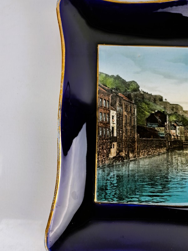 Deze set bestaat uit twee sierborden van aardewerk met ophangkoord. De borden tonen handgekleurd, gedrukt uitzicht op de stad Namur (België), met op beide het herkenbare beeld van de citadel. De scènes zijn getiteld: