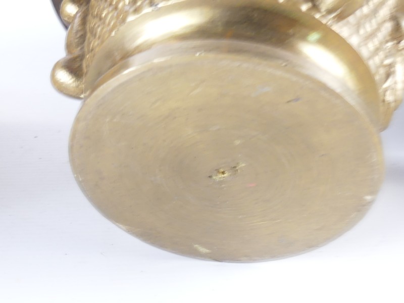 Set van 4 vijzels met stampers in verschillende stijlen. Uitgevoerd in messing / brons, rijk gedecoreerd met reliëf en wapenschild-motieven. Sfeervolle en decoratieve stukken.