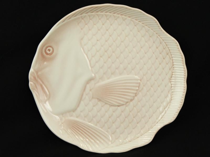Deze elegante borden zijn uitgevoerd in een zachte wit/rode kleur en hebben een verfijnd reliëf met vismotief, typisch voor het tijdloze en decoratieve ontwerp van Salins.