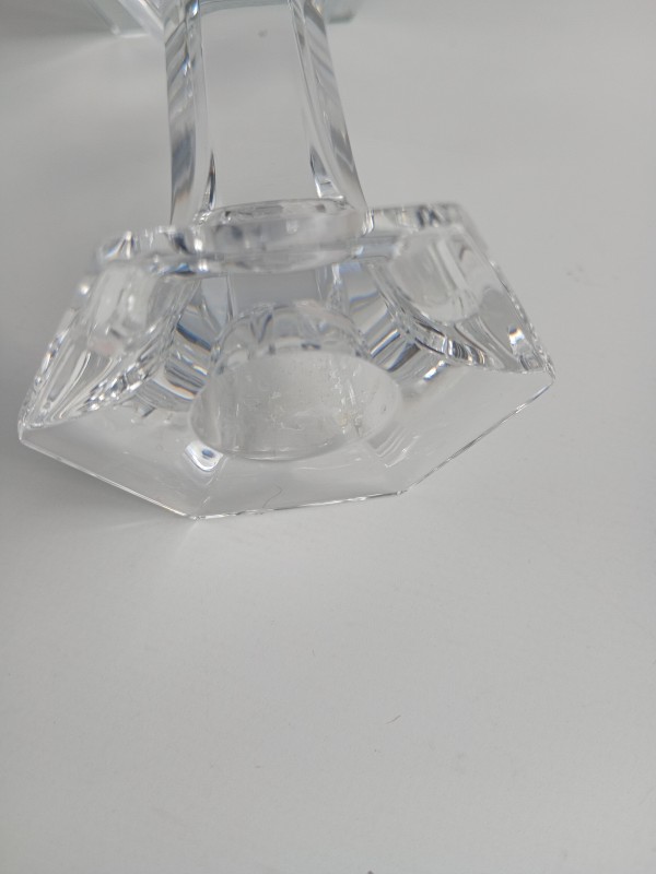 - Vorm: Geometrisch geslepen voet met facetten, slanke stam en zeshoekige kaarshouder