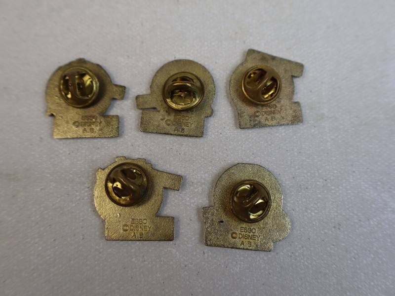 Aan de achterzijde zijn de pins gemerkt met © Disney en Esso, wat erop wijst dat het om een originele promotionele uitgave gaat uit de beginperiode van EuroDisney. Dit detail onderstreept de authenticiteit en het tijdsgebonden karakter van de set. Samen vormen deze vijf pins een mooi tijdsbeeld en zijn zij geschikt voor verzamelaars, maar ook voor decoratief gebruik op kleding, tassen of in een vitrinekast.