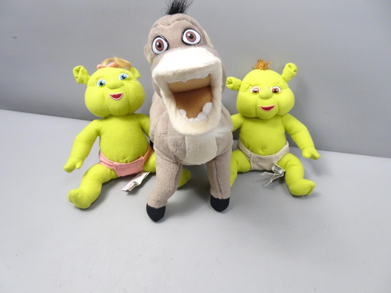 - De set omvat twee baby-ogre en een Donkey knuffels.