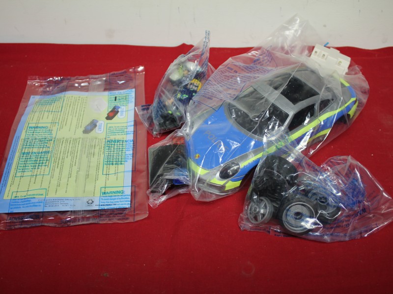 De set bevat een Porsche 911 Carrera 4S politievoertuig en een Playmobil-politiefiguur met accessoires. Het voertuig heeft werkende voor-, achter- en dashboardverlichting, evenals zwaailichten en sirenegeluiden. Het dak van de auto is afneembaar, waardoor de figuren gemakkelijk in de auto kunnen worden geplaatst. De set bestaat uit 36 onderdelen en is geschikt voor kinderen vanaf 4 jaar. In originele doos.