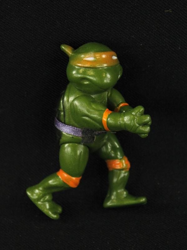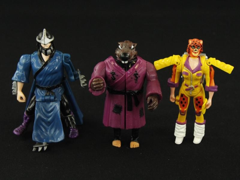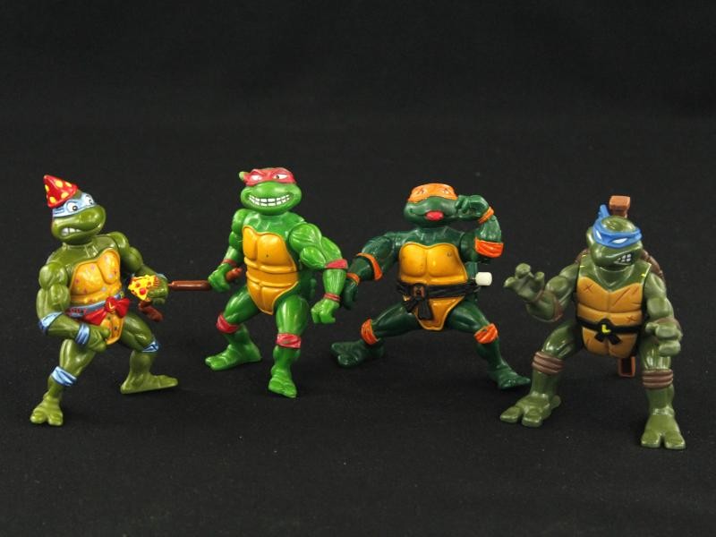 - Diverse TMNT actiefiguren waaronder de Turtles zelf, Shredder, Splinter, April O’Neil, en mutanten zoals Bebop en Rocksteady.