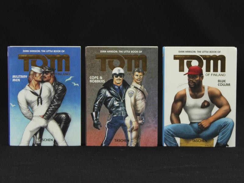 Set van drie compacte kunstboeken uit de reeks The Little Book of Tom of Finland, uitgegeven door TASCHEN. Elk boek belicht een ander thema uit het werk van de Finse kunstenaar Tom of Finland: Military Men, Cops & Robbers en Blue Collar.