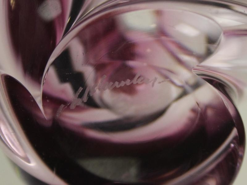 Een stijlvol en zeldzaam vintage kunstglasobject, dat zowel als decoratief stuk als designverzameling bijzonder in het oog springt.