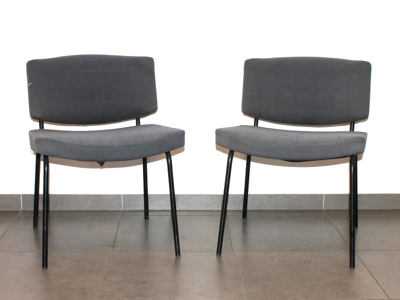 Twee vintage designstoelen, model Conseil, ontworpen door de Franse designer Pierre Guariche (1926-1995) voor het bekende Belgische merk Meurop.