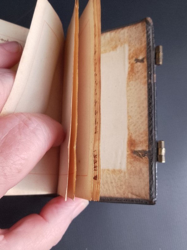 Een originele bladwijzer is nog aanwezig, met de inscriptie: