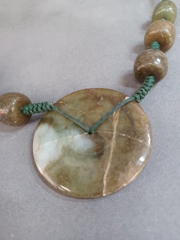 Unieke natuursteen ketting met Jade-look hanger en kralen
