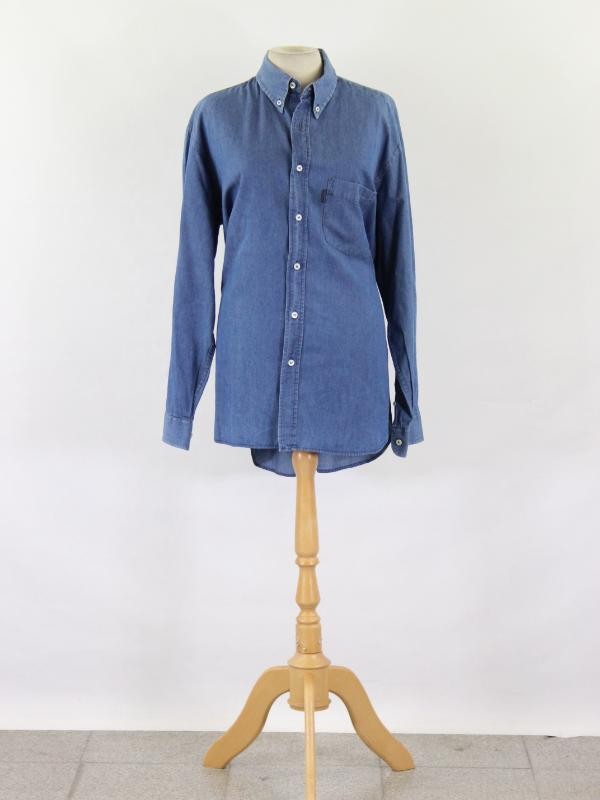 Op basis van de afmetingen (borstbreedte 58 cm plat gemeten, ca. 116 cm omtrek) kan dit hemd indicatief overeenkomen met een damesmaat L à XL (EU 42–44). Door de rechte en ruimere snit kan het eventueel ook licht oversized gedragen worden bij een kleinere maat.
