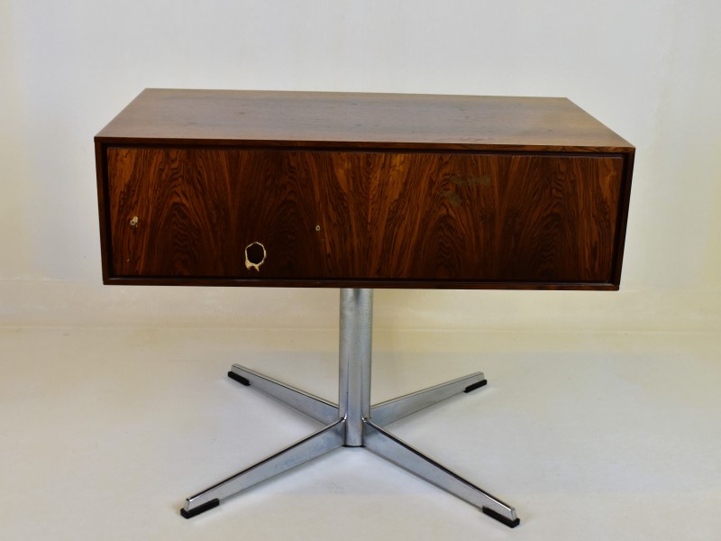 Vintage bijzetmeubel met laden op metalen voet, jaren 60.
