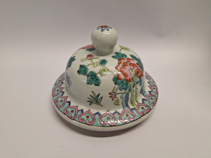 - Herkomst: Vervaardigd als decoratief object in Aziatische stijl; een kwalitatief stuk dat de sfeer van antiek exportporselein uitstraalt.