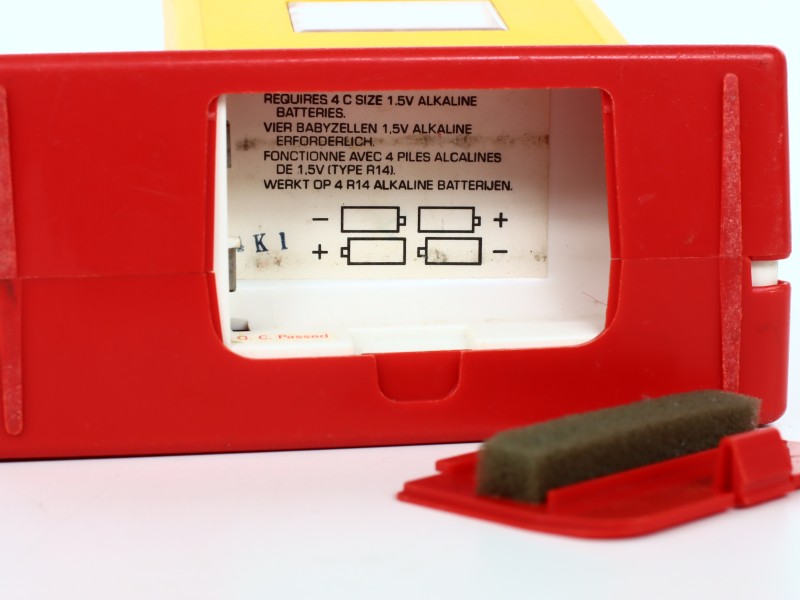 Fisher-Price maakte hem robuust, met grote knoppen en een stevige handgreep, zodat peuters en kleuters er zelf mee konden spelen zonder hem snel stuk te maken. Tegenwoordig, leuk voor verzamelaars van retro speelgoed, Fisher-Price liefhebbers of als decoratief item met een vleugje jeugdsentiment.