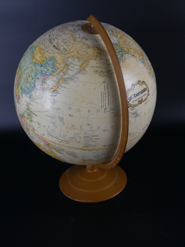 Vintage Globemaster-wereldbol met een diameter van 12 inch (ca. 30 cm), hoogte 40 cm.