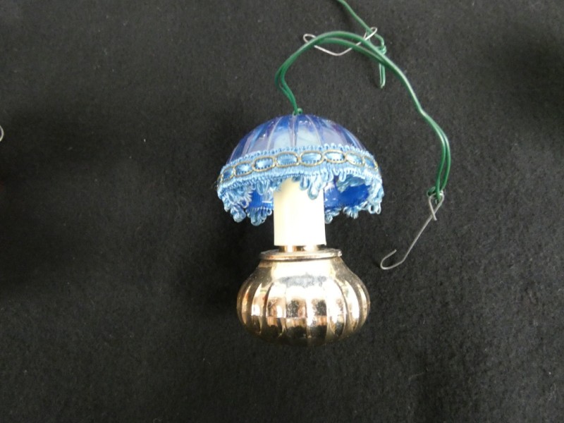 Doel: Hun hoofddoel was om het licht te reflecteren en te versterken van de kleine, heldere of gekleurde lampjes, waardoor de boom er helderder uitzag en extra kleur kreeg. Het dunne draadje dat bovenaan te zien is, kan deel uitmaken van het oorspronkelijke bevestigingsmechanisme of gewoon een handvatdraad zijn.
