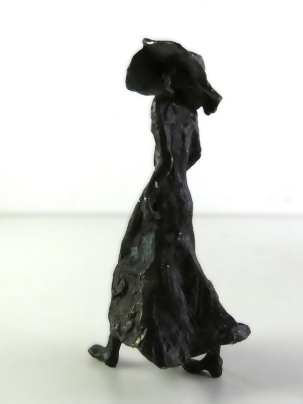 Afm: lengte 3 cm; breedte 3 cm; hoogte 13 cm. - Een buste van een elegante dame met een grote, modieuze hoed,