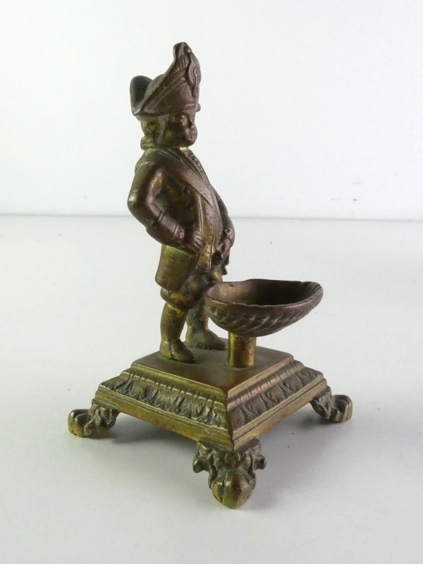 Afm: lengte 6 cm; breedte 5.5 cm; hoogte 13.5 cm. - Humoristisch beeldje dat het beroemde Brusselse standbeeld Manneken Pis uitbeeldt,